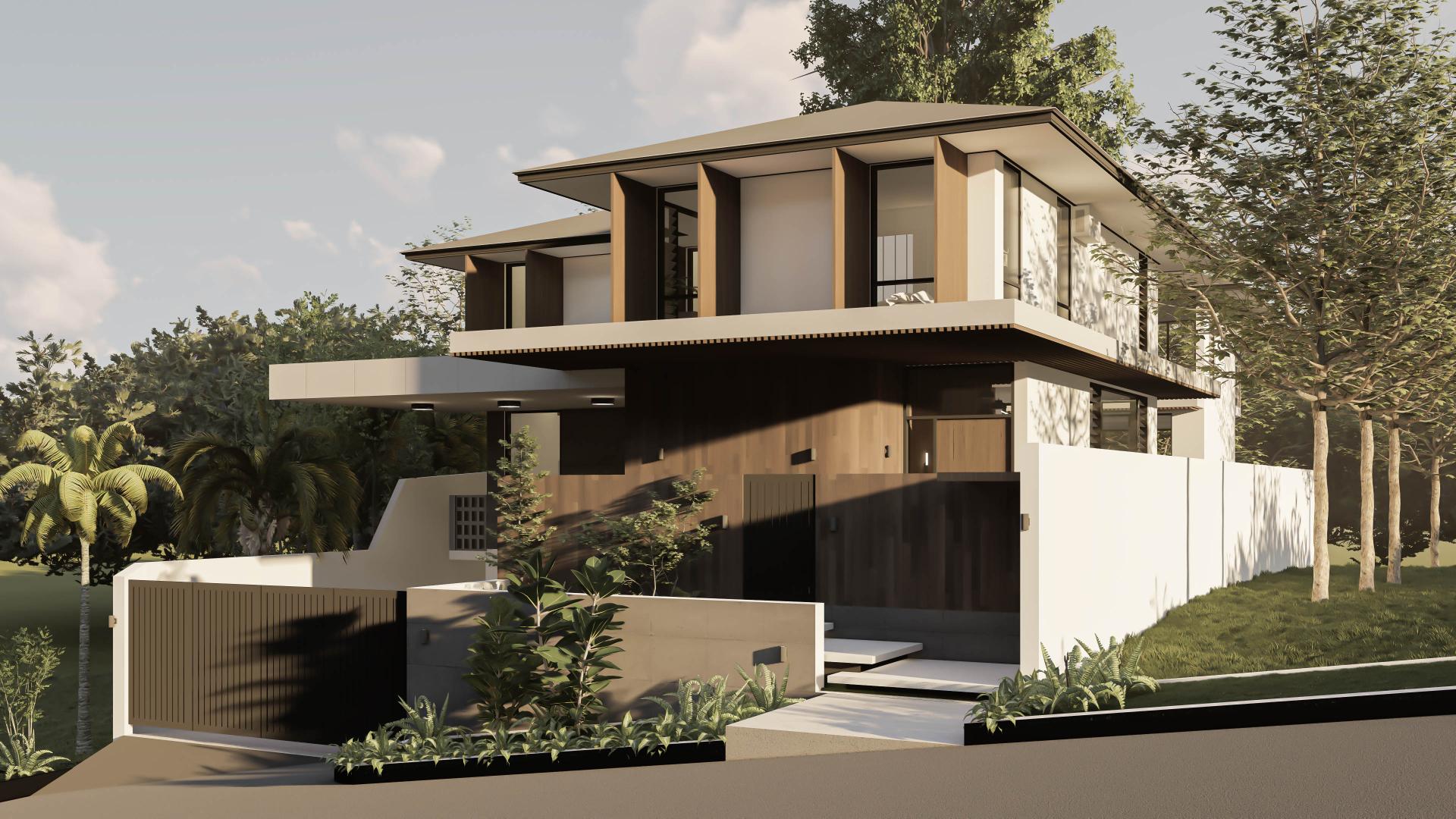 [vc_row css=”.vc_custom_1606981473870{padding-top: 4px !important;}” el_id=”abouttheproject”][vc_column][vc_empty_space height=”4px”][vc_column_text]A 2-Storey Residence with basement as a result of the sloping site and varying elevations within the property. This modern residence was designed with 4 bedrooms all with their own Toilet and Baths, a central courtyard, an open-plan living-dining-kitchen area, a dedicated space for the staff, and a roof deck.[/vc_column_text][/vc_column][/vc_row]